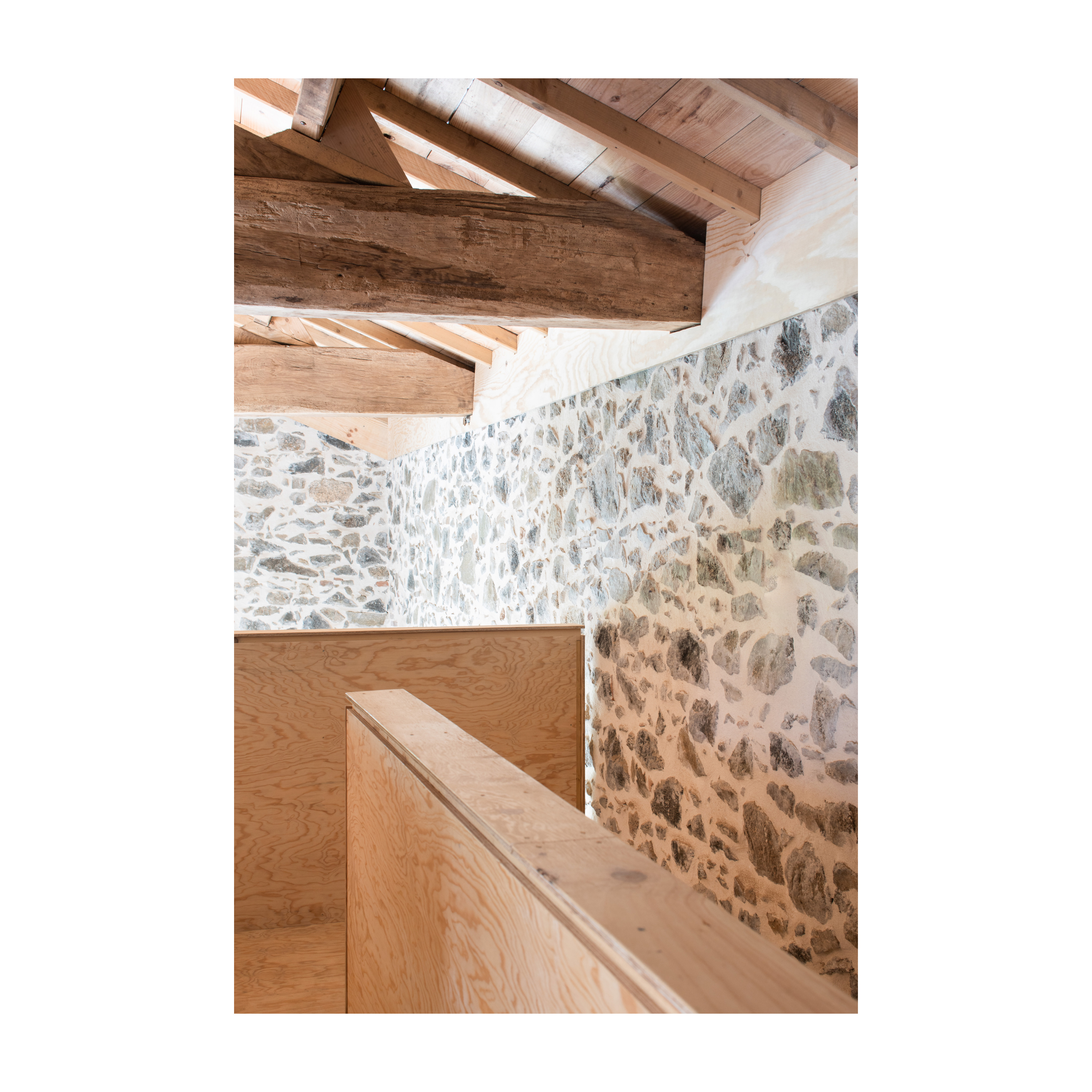 Du travertin, du chêne et une grande mezzanine tout en Douglas.