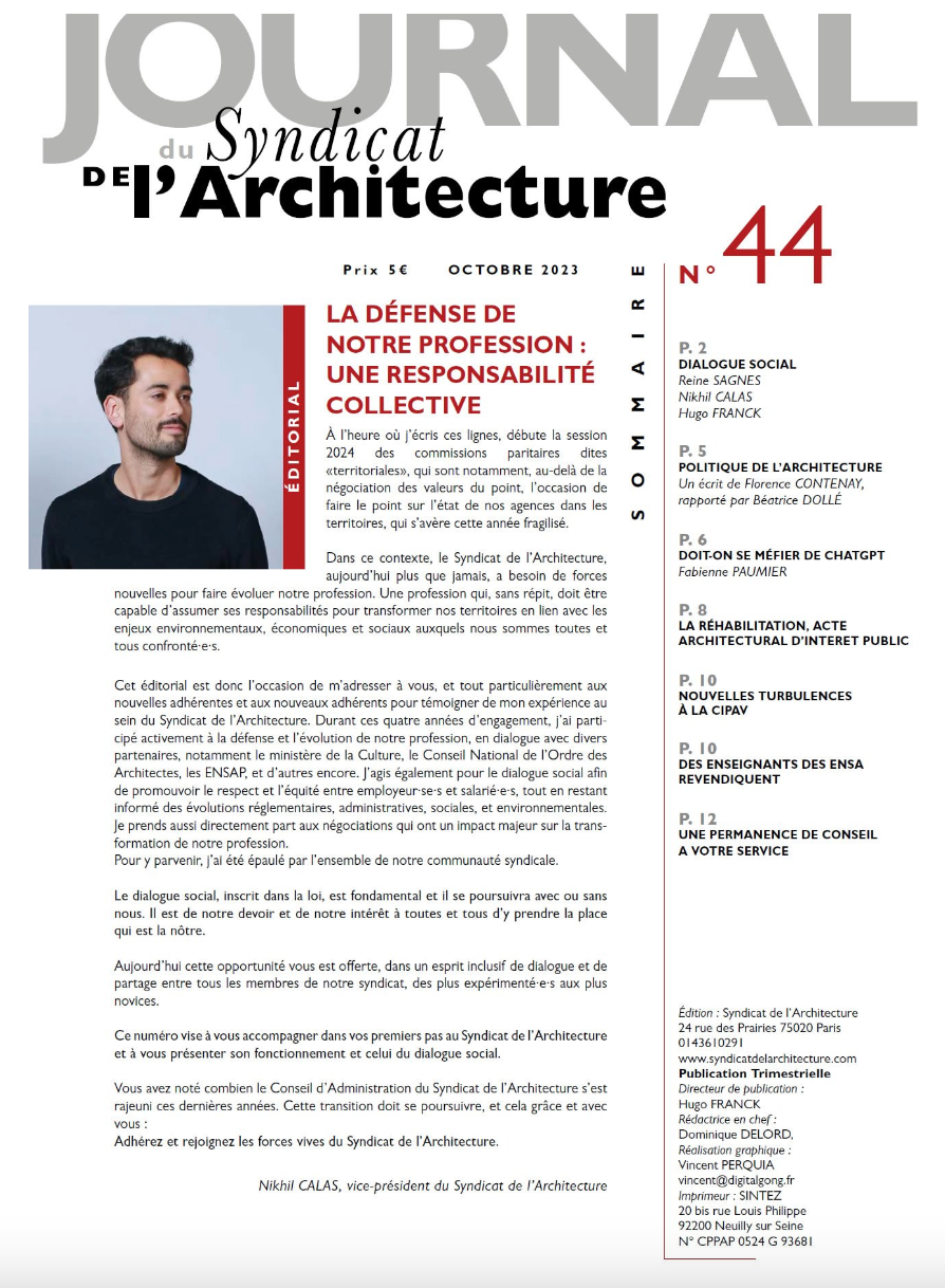 Retrouvez l'éditorial de Nikhil sur le Journal du Syndicat de l'Architecture !